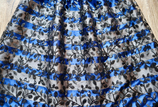 Couture Overlay Ribbon Skirt Women’s Black Embroidered Sequin Lace Sapphire Satin Gun Metal Indigenous HandMade Clothing CustomWaist *up to 50 inches* (enter desired sizes waist size “inches” or Dress/Pants size in order notes)