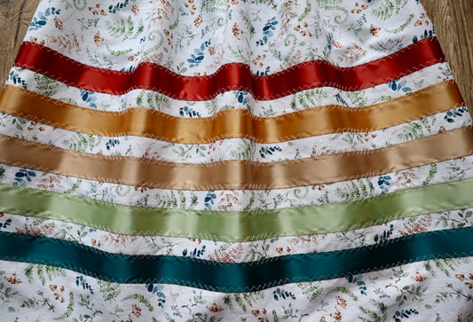 Handmade Ceremony, Casual Ribbon Skirt: Earth Tones, Ivory Fern Floral Print, Custom Waist *up to 50 inches* (enter desired sizes waist size “inches” or Dress/Pants size in order notes)