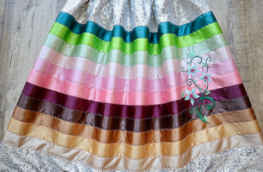 Couture Embroidered Stacked Sequin Ribbon Skirt Pockets Women’s OOAK Indigenous HandMade Clothing CustomWaist *up to 50 inches* (enter desired sizes waist size “inches” or Dress/Pants size in order notes)