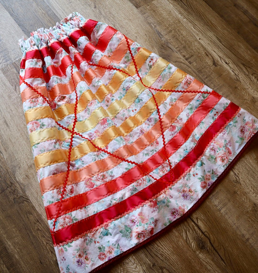 Couture Ribbon Pockets Womens Ruby Ombre Zigzag RicRac Ivory Floral Print Premium Cotton OOAK Indigenous HandMade Clothing CustomWaist *up to 50 inches* (enter desired waist size “inches” or Dress/Pants size in order notes)