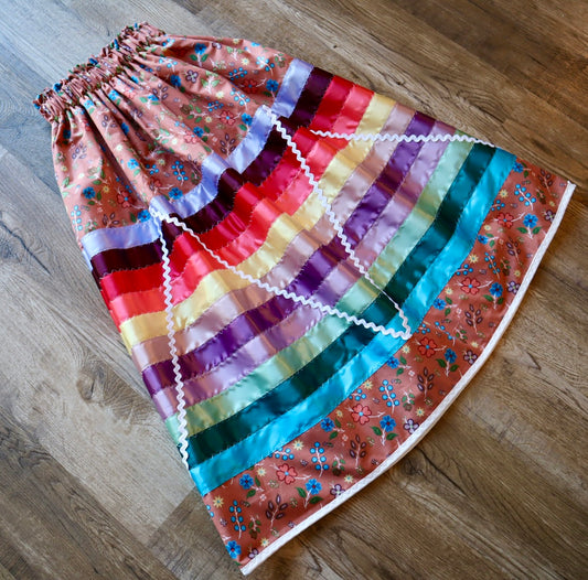 Couture Stacked Ribbon Pocket Womens RicRac Clay Floral Print Premium Cotton Miscellaneous OOAK Indigenous HandMade CustomWaist *up to 50 inches* (enter desired sizes waist size “inches” or Dress/Pants size in order notes)