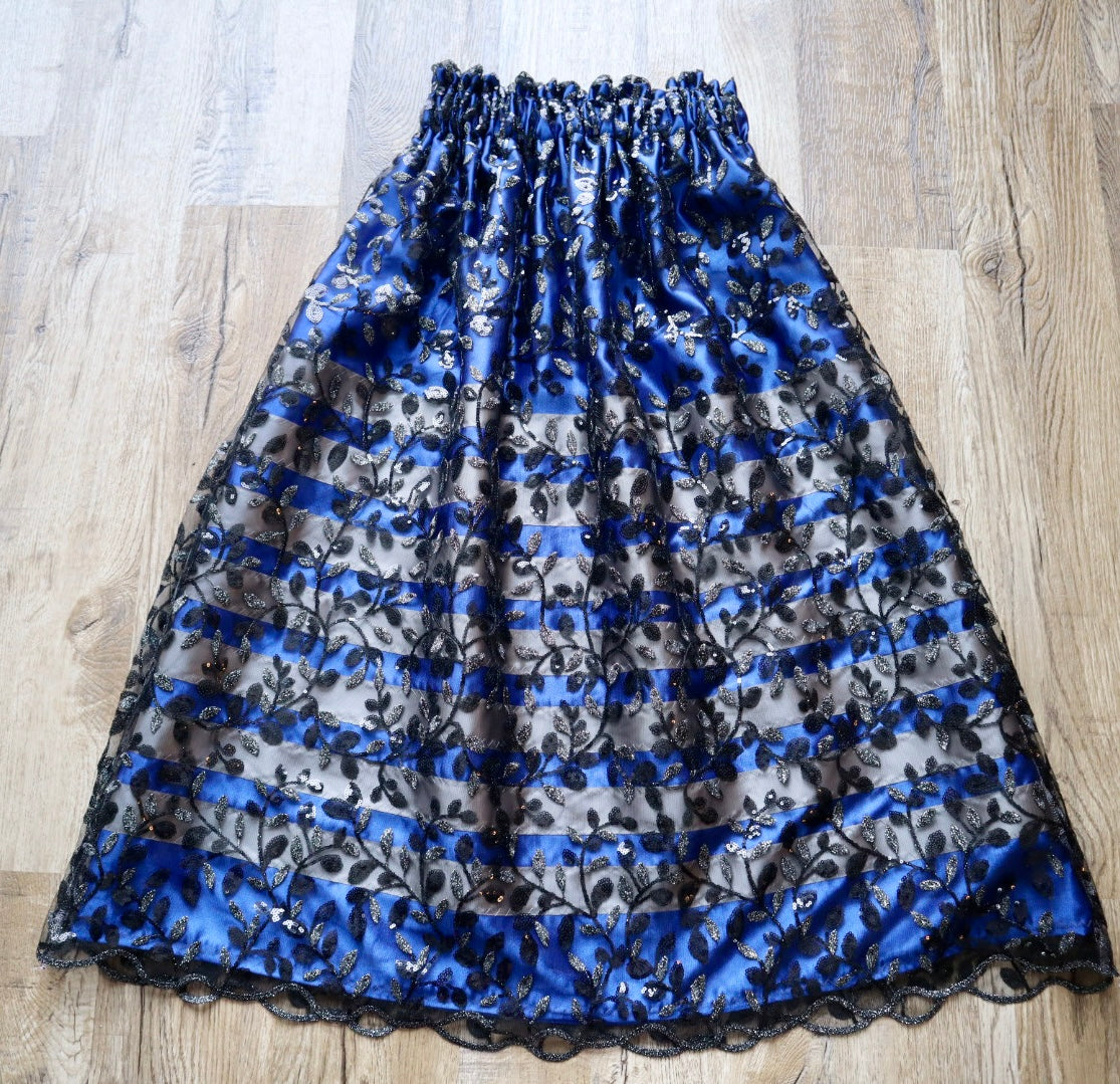Couture Overlay Ribbon Skirt Women’s Black Embroidered Sequin Lace Sapphire Satin Gun Metal Indigenous HandMade Clothing CustomWaist *up to 50 inches* (enter desired sizes waist size “inches” or Dress/Pants size in order notes)