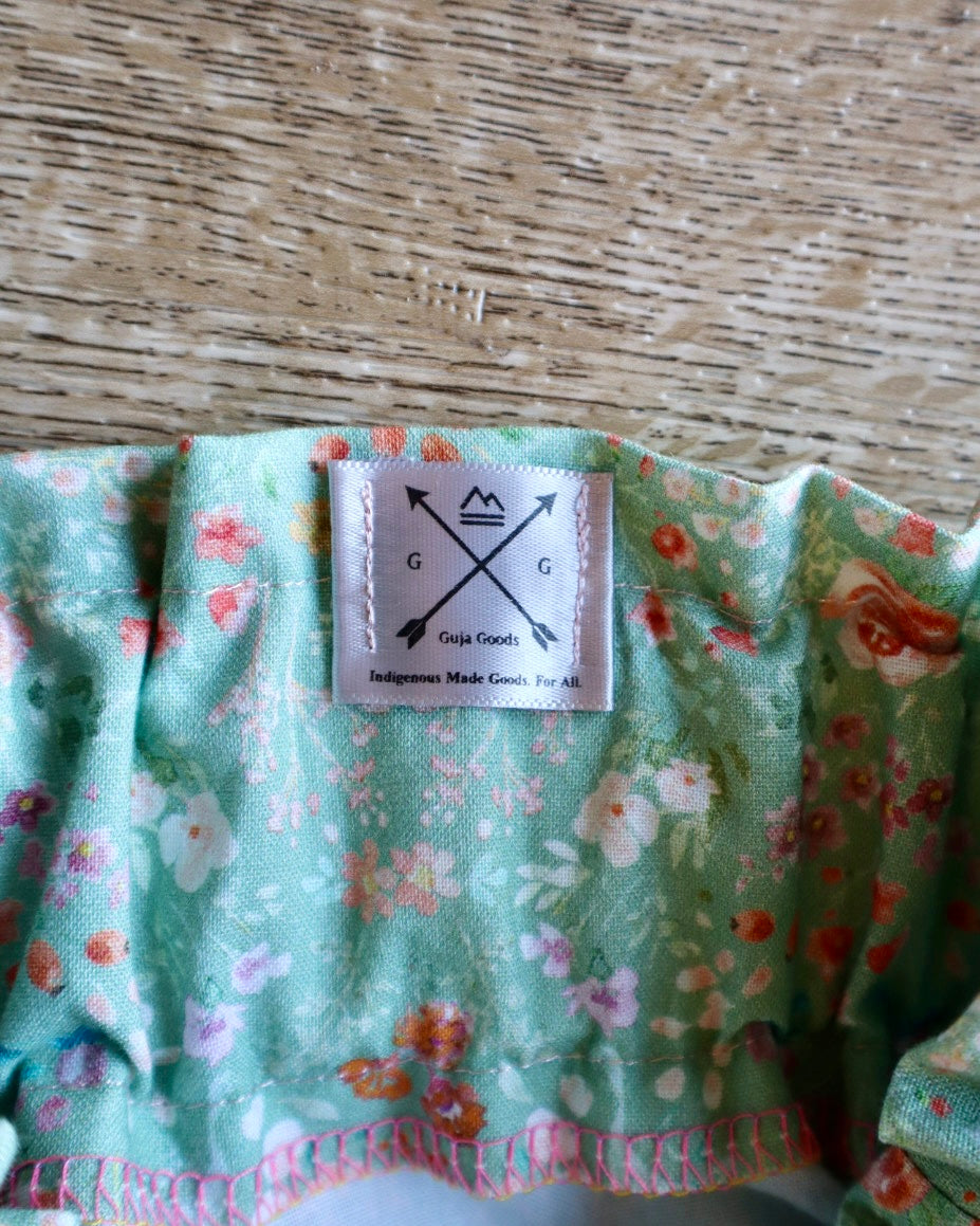 Handmade Ribbon Skirt, Child Size 6-8 Jewel Tones Sage Floral Print Premium Cotton, OOAK Indigenous Made Clothing