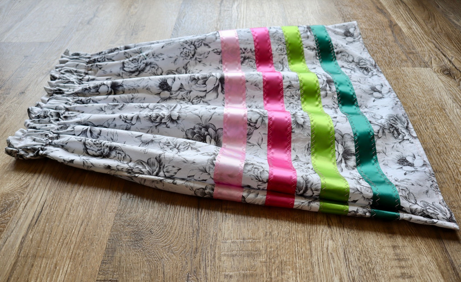 Handmade Ribbon Skirt, Youth Size 7-9 Black and White Floral Print Premium Cotton Green Pink Ombre OOAK Indigenous Made Clothing